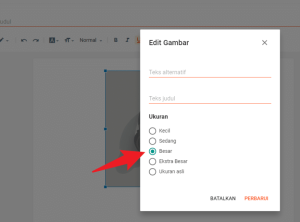 Dengan memilih “Ukuran asli”, kamu memberitahu Blogger untuk sebisa mungkin menampilkan gambar sesuai file yang kamu upload, bukan versi terkompresi yang lebih kecil.