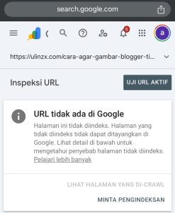 - Minta Pengindeksan Ulang: Untuk mempercepat, buka Google Search Console, salin URL salah satu artikelmu yang iklannya tidak muncul, lalu gunakan fitur “Inspeksi URL” dan klik “Minta Pengindeksan”. Ini akan ‘memancing’ Googlebot untuk segera datang.
